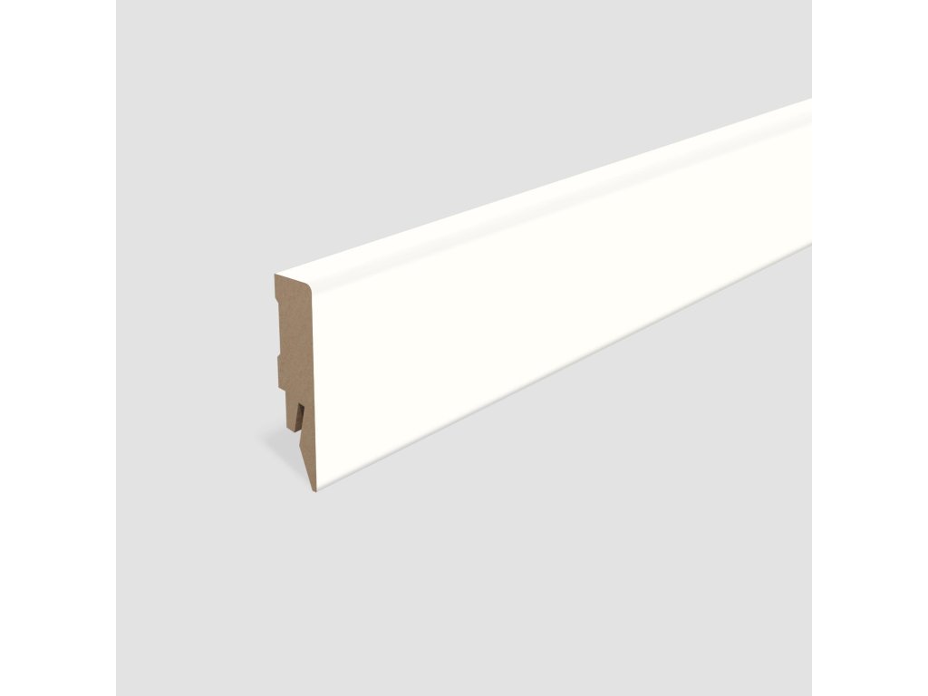 Biela MDF lišta na podlahu EGGER Cubical dĺžka 2,4 m, výška 58mm EGGER Cubical Biela obvodová lišta MDF