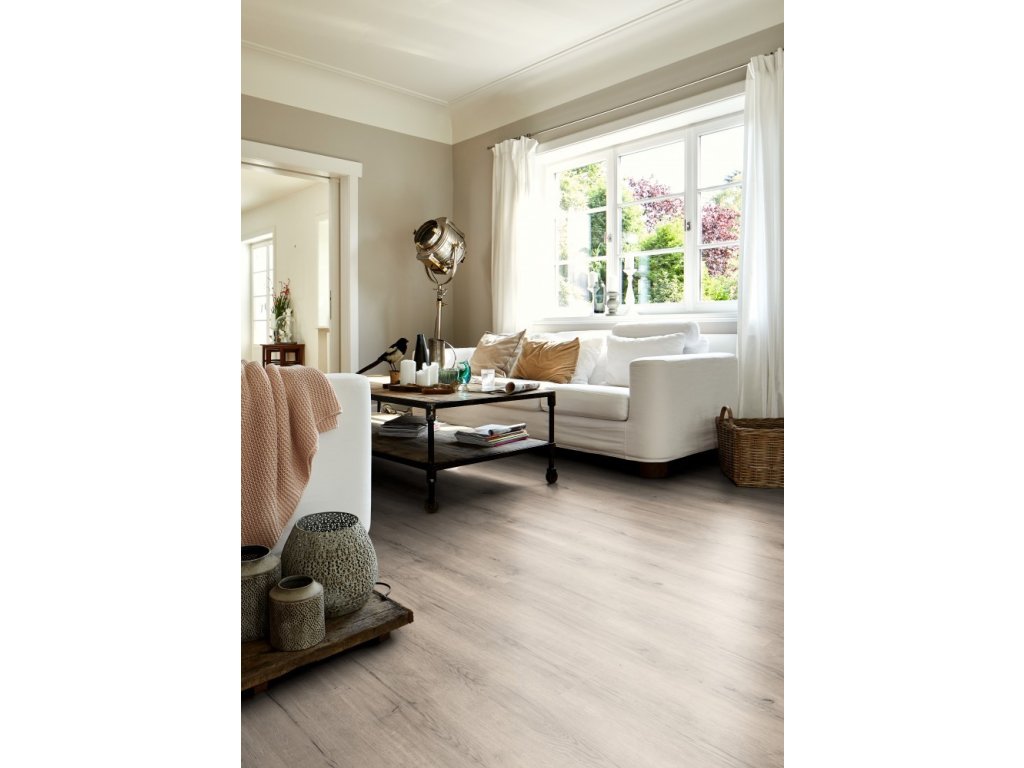 Dub Carlin sivý vyniká jemnými prasklinami, ktoré zdôrazňujú jedinečný charakter tohto dekoru. Svojou decentnou sivou farbou sa ľahko kombinuje so svetlými odtieňmi a je ideálnou voľbou pre vytvorenie vintage štýlu. Podlahové dosky vo formáte Classic zvýraznia celkový vzhľad priestoru, zatiaľ čo 4-stranné priznané drážky po celom obvode podčiarkujú štruktúru každej dosky a dodávajú podlahe autentický a prirodzený vzhľad.
